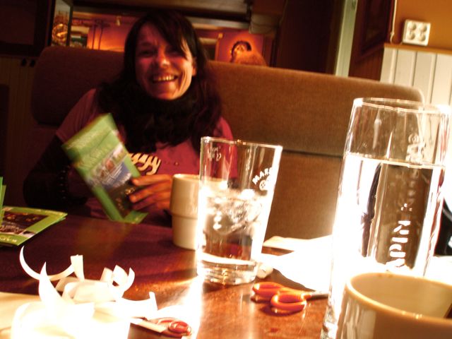 Pysähdyttiin kahville ja askartelemaan lisää esitteitä Sivukirjastoon. Siellä voi edelleen jatkaa hyvillä mielin käymistään, koska omistajanvaihdoksesta ja epävarmuudesta huolimatta keräyslippaaseen kilahti seteli.